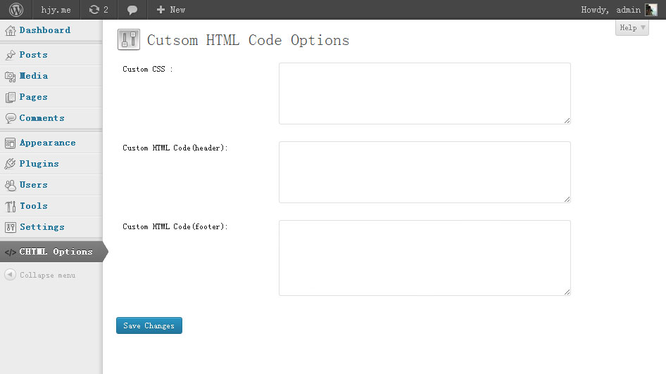 Plugins2013年11月10日插件:Custom HTML Code#插件 原文:https://hjy.me/custom-html-code/ 因为网站的统计代码直接写在主题文件却因经常换主题丢失统计代码,丢失统计数据,虽不在意RP之类的数据,但还是会在大半年或者一年之后看看网站的流量,或多或少,好奇心还是要想看看。所以,我就做了一个很简单的插件,专门保存网站的统计代码。然后插件就诞生了。 下载地址:[download id=”38″]