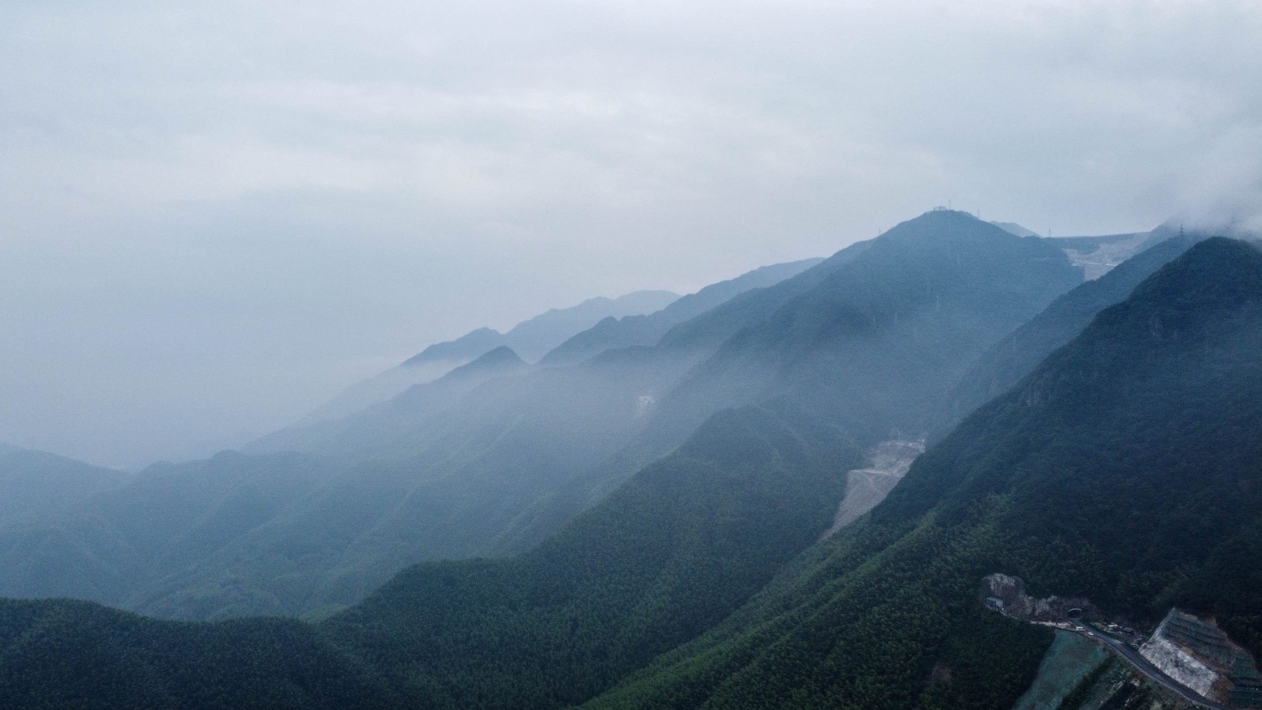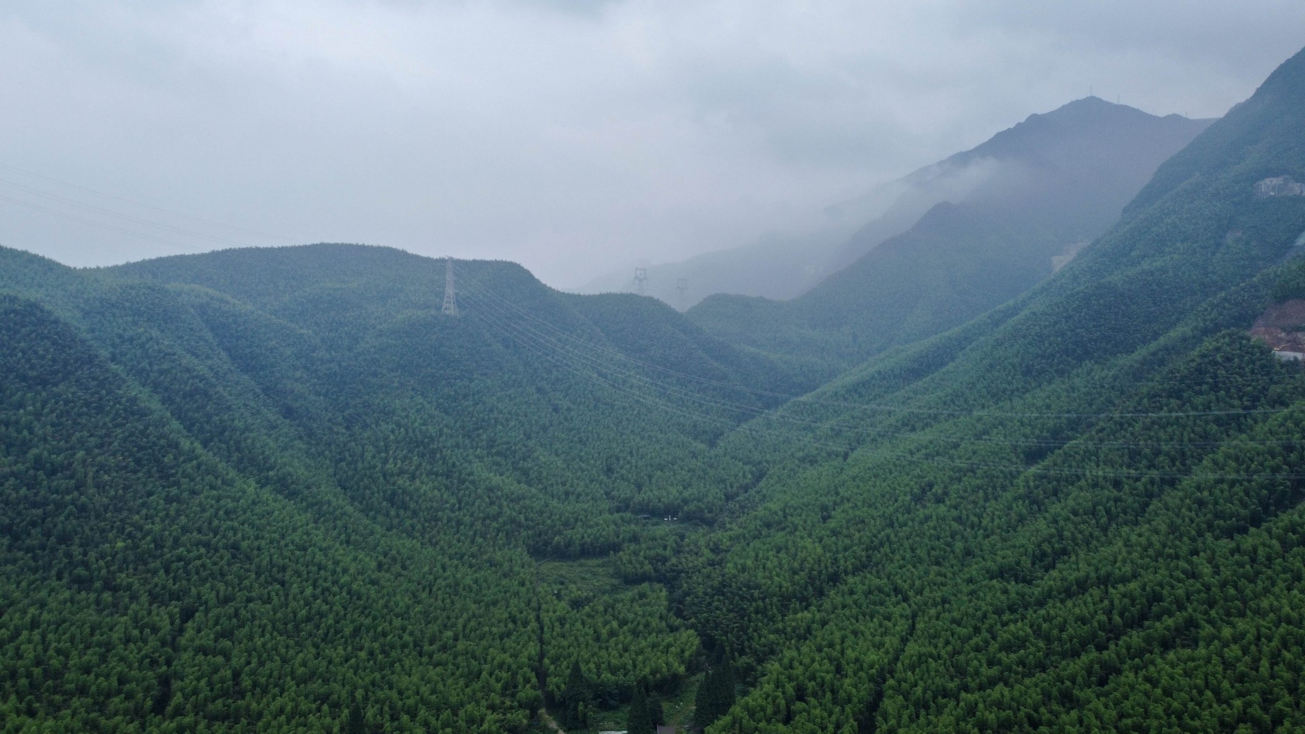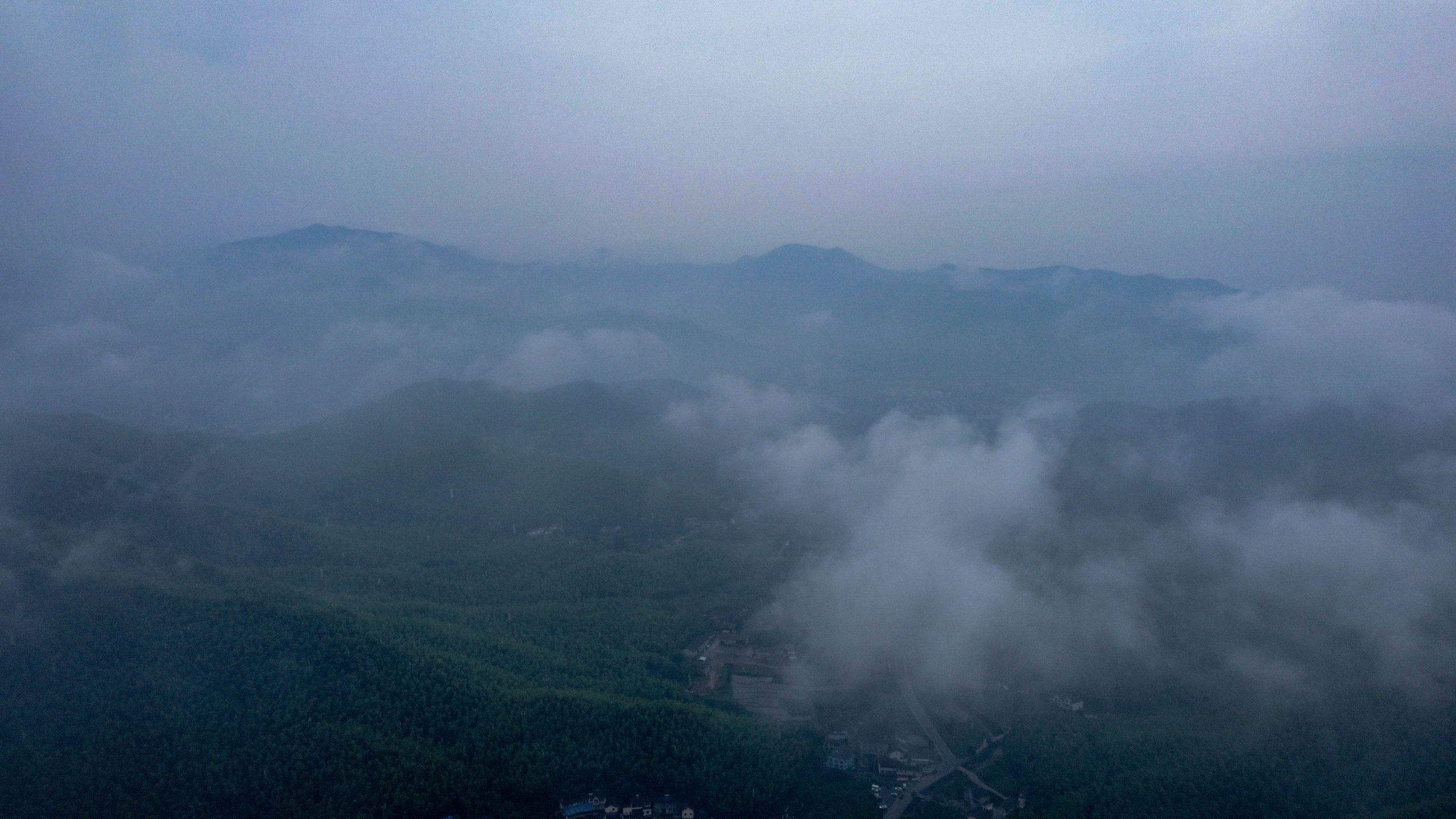 起飞后的就下雨了,难得来一次山里,难得云雾缭绕,也还没看过雨从天上落下的样子。那就继续飞吧。